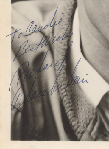 Description:  Early sixties portrait, inscribed and signed by the TV and film actor (1934-2025) to the young daughter of an assistant director.  A scarce item from the time he was one of TV's top heartthrobs, starring in the smash-hit series Dr. Kildare (1961-1966).  Chamberlain would achieve TV superstardom all over again as the lead in the blockbuster miniseries Centennial (1978-1979), Shogun (1980), and The Thorn Birds (1983).  Films include Ken Russell's The Music Lovers (1971), The Three Musketeers (1973), The Four Musketeers (1974), The Towering Inferno (1974), and Peter Weir's The Last Wave (1977).  (Vintage original photograph; true vintage autograph)