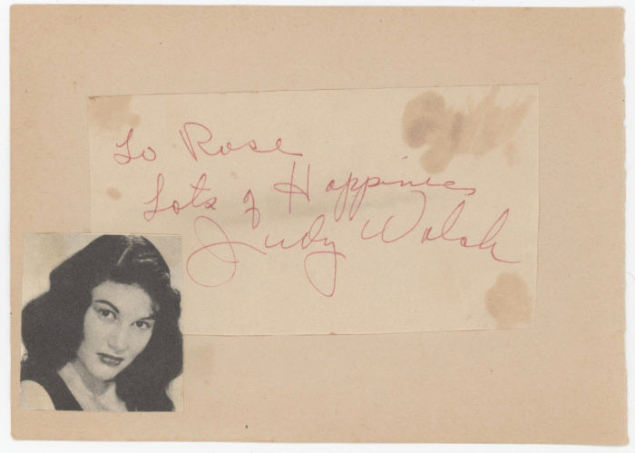 Description: Inscribed and signed paper affixed to an autograph album page. Walsh (1930-2006) played decoratively exotic roles in a few B films of the fifties, including Aladdin and His Lamp (1952), The Half-Breed (1952), Cat-Women of the Moon (1953), and Cannibal Attack (1954). Nearly nonexistent in signed material, and one of the very rarest starlet autographs. The autograph of film and TV actor Noah Beery, Jr. (The Rockford Files) is on the reverse. (Vintage item from the early fifties)