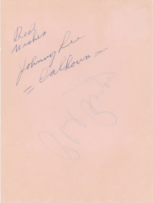Description: Surpassingly scarce autograph album page signed Johnny Lee with "Calhoun" underneath, the name of his character on CBS's The Amos 'n' Andy Show. The autograph of actor Phil Regan is on the reverse. Lee (1898-1965) was a favorite of early TV audiences for playing shyster lawyer Algonquin J. Calhoun on the hit sitcom, which ran from 1951 to 1953. The gifted comic and dancer-singer also provided the voice of Br'er Rabbit in Walt Disney's 1946 classic, Song of the South. Other films include Tales of Manhattan (1942), Stormy Weather (1943), The First Traveling Saleslady (1956), The Spirit of St. Louis (1957), and North to Alaska (1960). One of our rarest-ever offerings. (Vintage item circa early fifties)